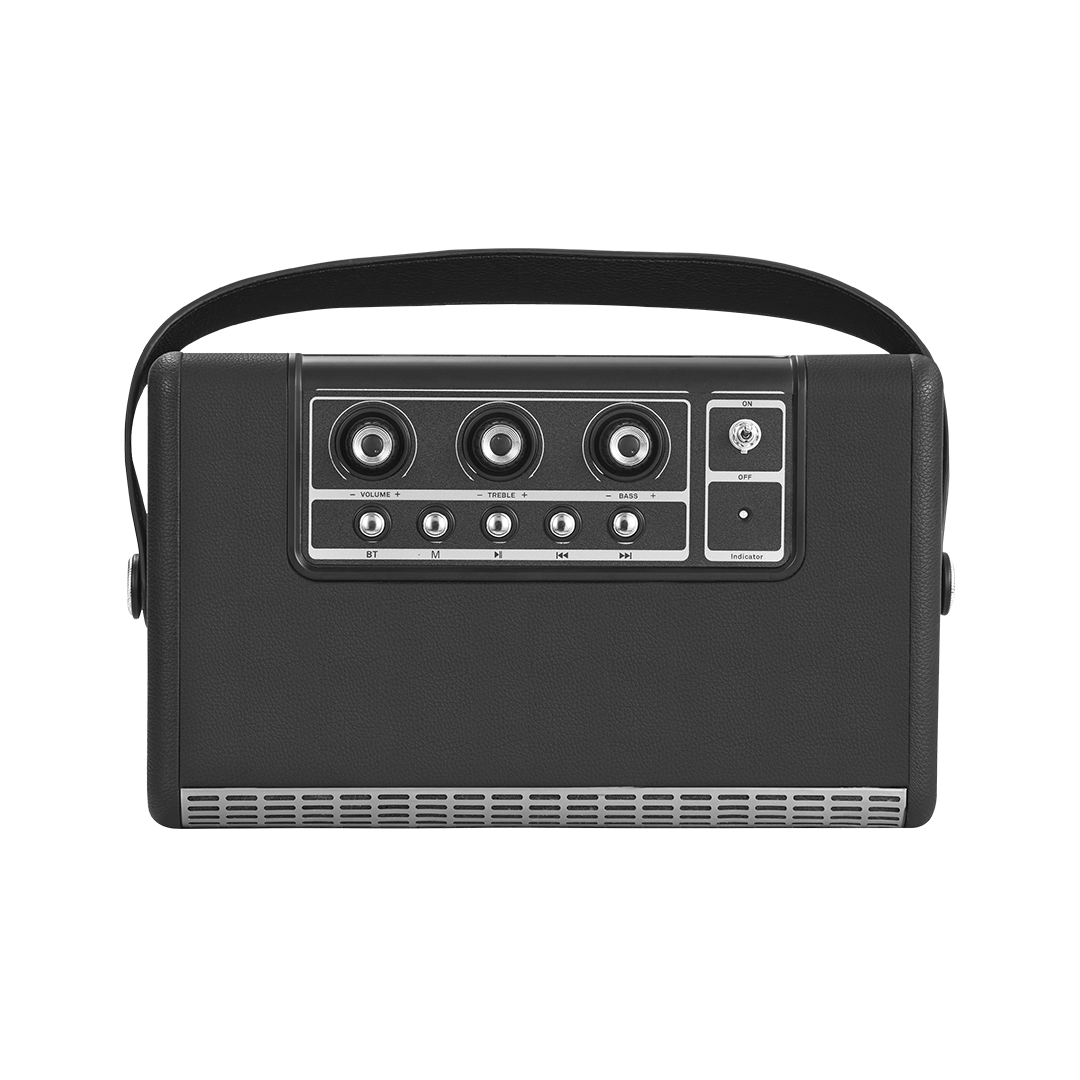 Crafted with a premium retro style design featuring full wooden cabinets integrated with exquisite leather and fabric crafts, this speaker not only enhances your auditory experience but also adds a touch of elegance to your space.