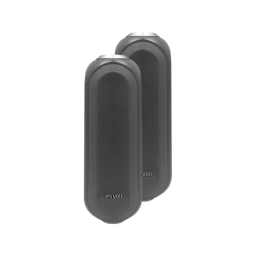 Stylish Design: The Evvoli home theatre system boasts a sleek matte black finish with plastic and metal mesh construction, blending seamlessly with any home decor.