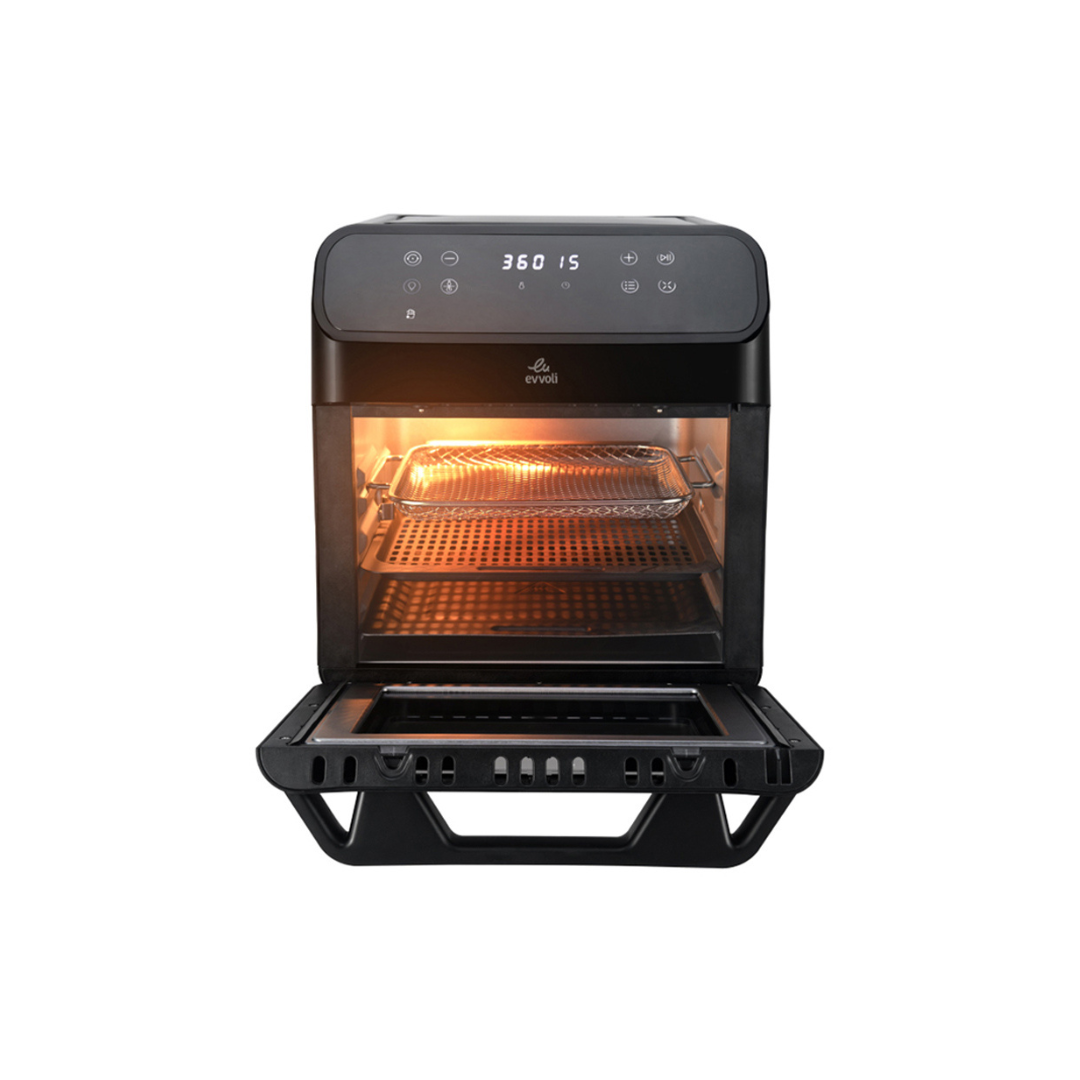 قم بترقية مطبخك وغيّر روتين الطهي الخاص بك مع فرن القلاية الهوائية من إيڤولي بسعة 12 لتر. بفضل ميزاته المبتكرة وقدراته المتعددة، يجعل هذا الجهاز الذكي الطهي أكثر صحة ومتعة من أي وقت مضى.