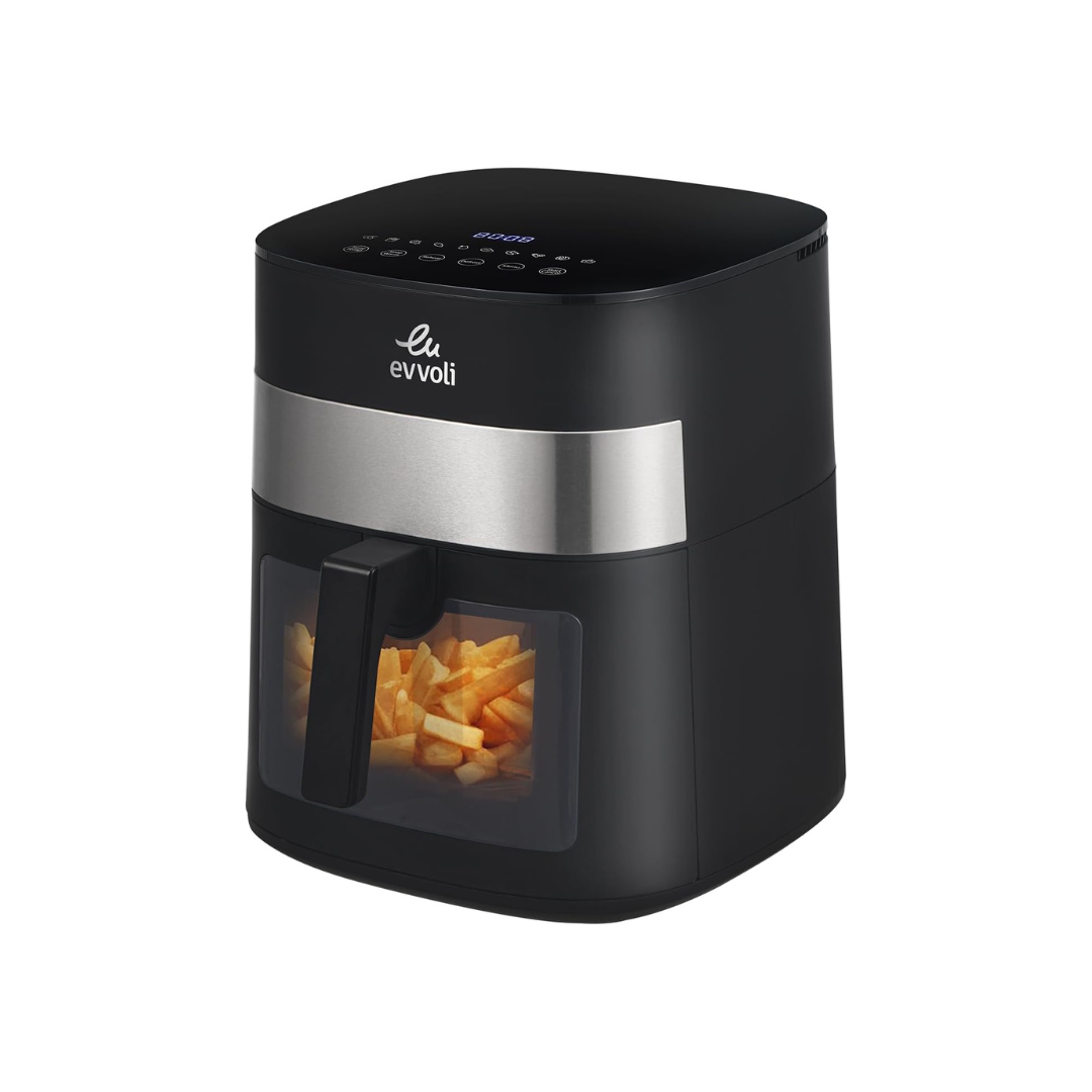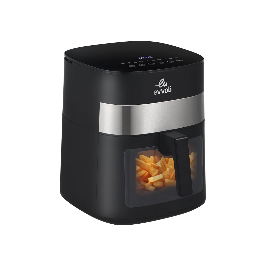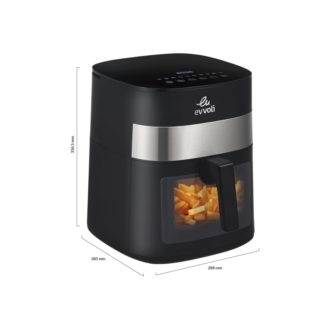 قلاية هوائية من إيڤولي بسعة 8 لتر مع 10 برامج مسبقة الإعداد ونافذة شفافة لمراقبة الطعام| 1800 واط.